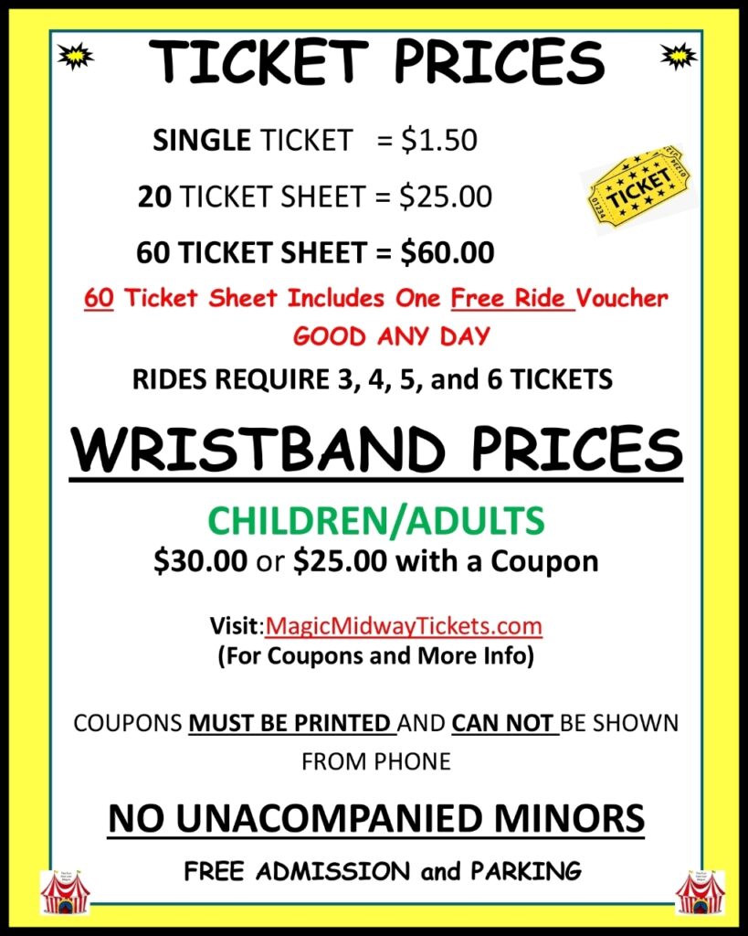 Over 30 Attractions Which Includes, Thrill Rides, Kiddie Land, Family Games of Skill, Super Food Courts, Face Painting, Birthday Specials Each day.
