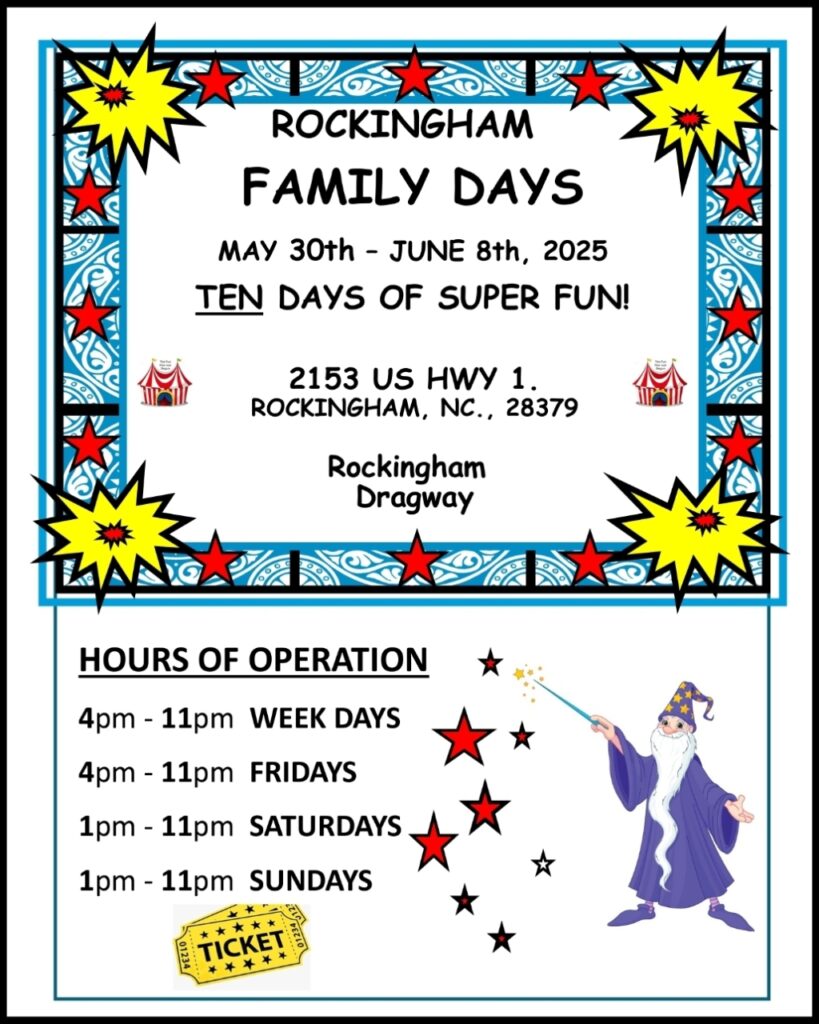 Just click on our Main Facebook Page, Magic Midways ๐ช, Then LIKE The Page and then SHARE and TAG The “New Rockingham Family Days” Post with as many Friends as possible! Good Luck!