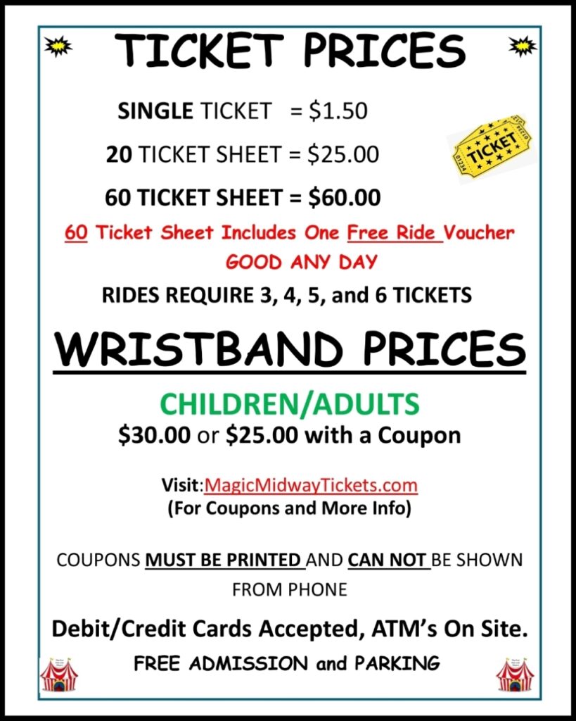 Over 40 Attractions Which Includes, Thrill Rides, Kiddie Land, Family Games of Skill, Super Food Courts, Face Painting, Military Specials Each day, Birthday Specials Each day, First Responder Specials Each day, Police Specials Each day.